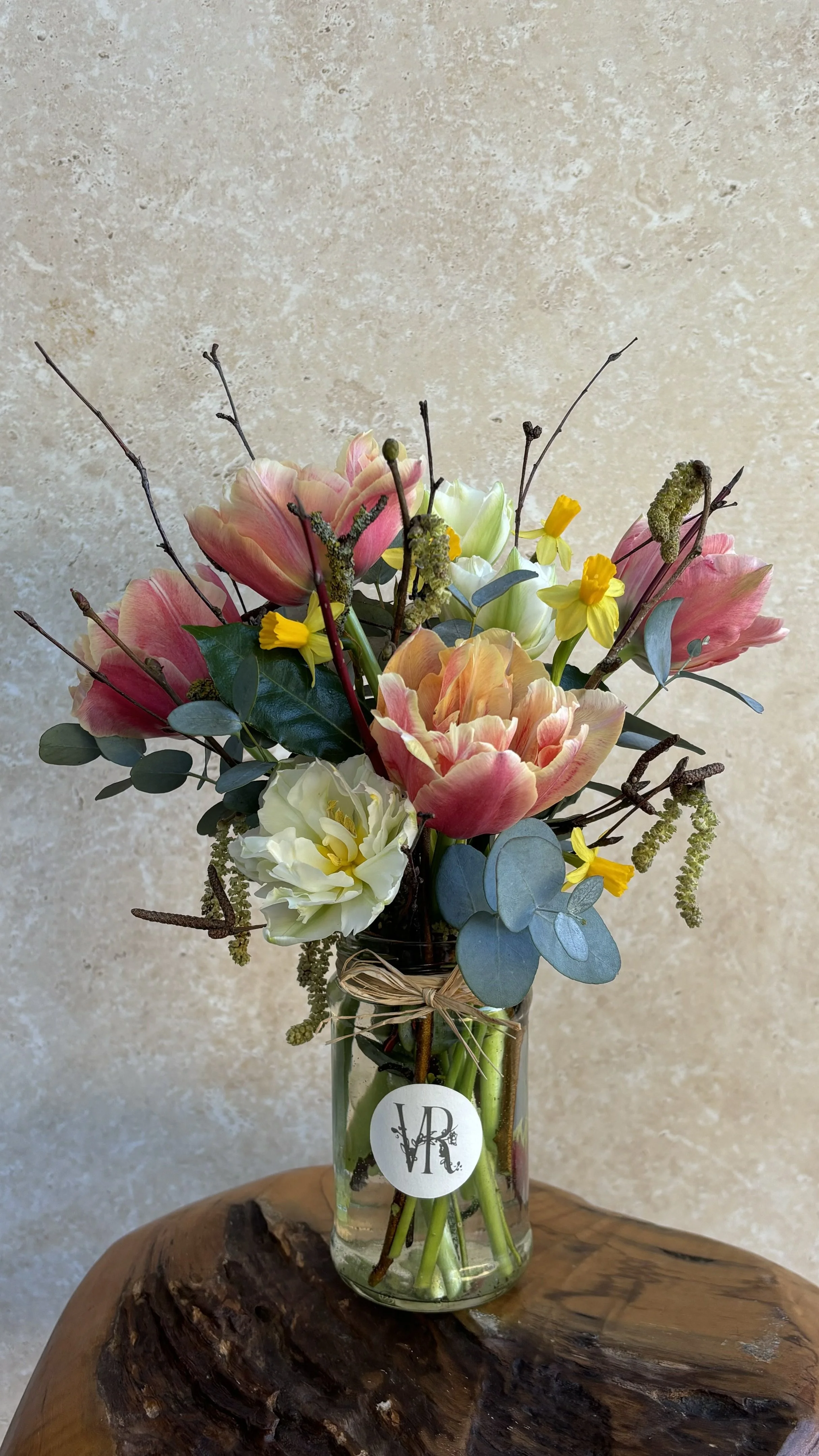 These little jars of joy are the perfect choice for gifting to your favourite pals for Galentine’s Day or as a small-but-perfectly-formed gesture of love for your Valentine. Packed with British-grown, seasonal and scented blooms in spring brights, with signature foraged textural elements.